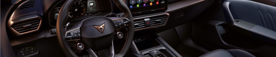 Внатрешноста на CUPRA Terramar нуди нова интерпретација на спортскиот дух – кокпит ориентиран кон возачот, нагласен со прогресивен дизајн на централната конзола и премиум материјали, што создава простор каде технологијата и емоциите се спојуваат во едно.